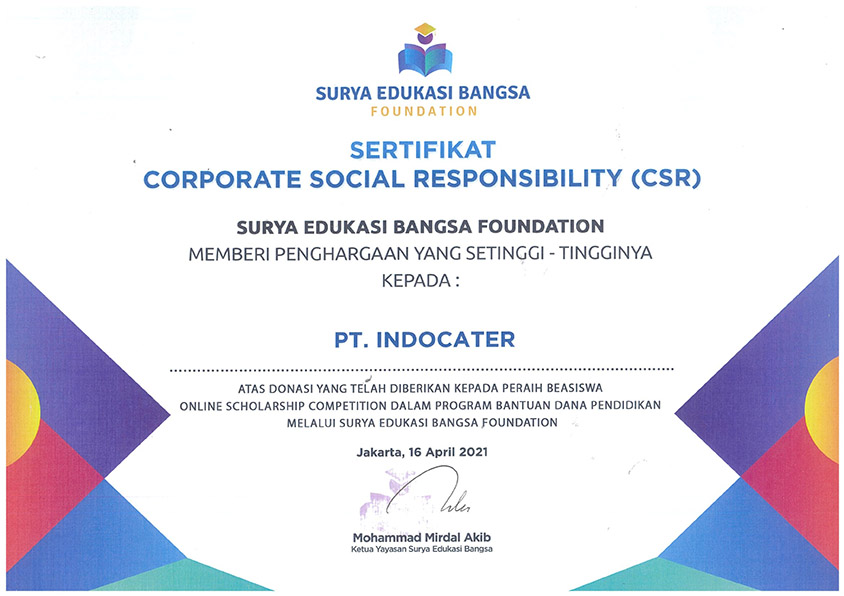 Corporate Social Responsibility (CSR) Policy. It is Indocater’s Commitment to create a prosperous community around the work area through a series of empowering socio-economic-community programs prepared by involving community participation