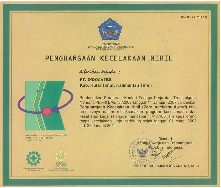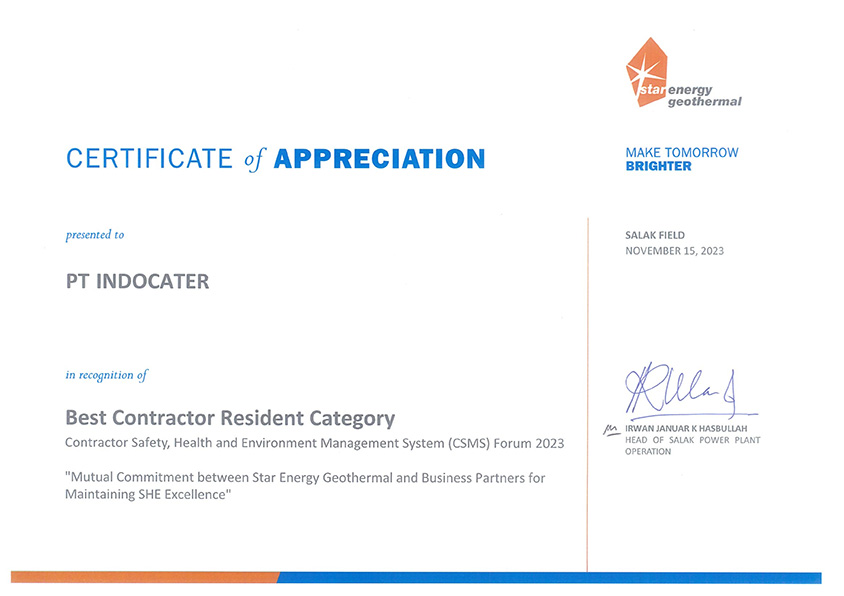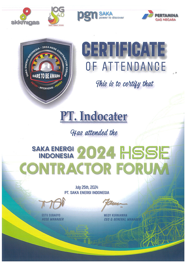 Health, Safety and Environmental policy. It is Indocater's Commitment to create a healthy work environment that supports the aspects of Safety, Workforce Health and Environmental Safety.
